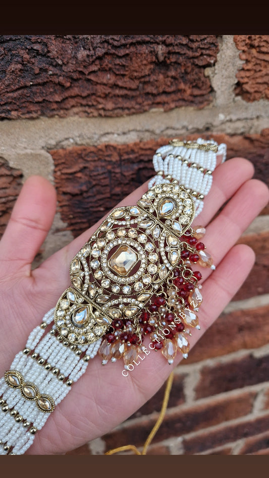 MAHNOOR - Elegant Indian Choker Set- MAROON/RED