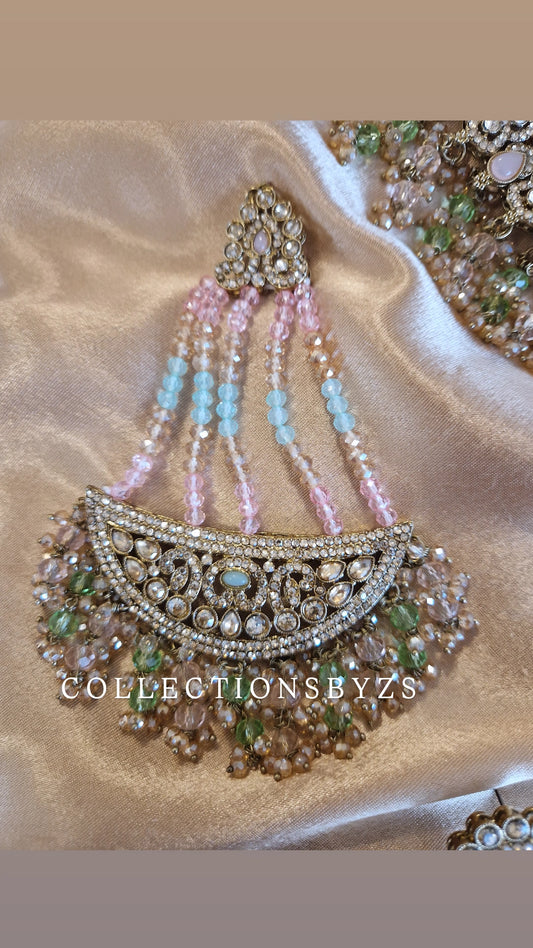 A Y L A - Stunning 4 Piece Indian Wedding/Party Jewellery Set - Mint/Aqua & Pink