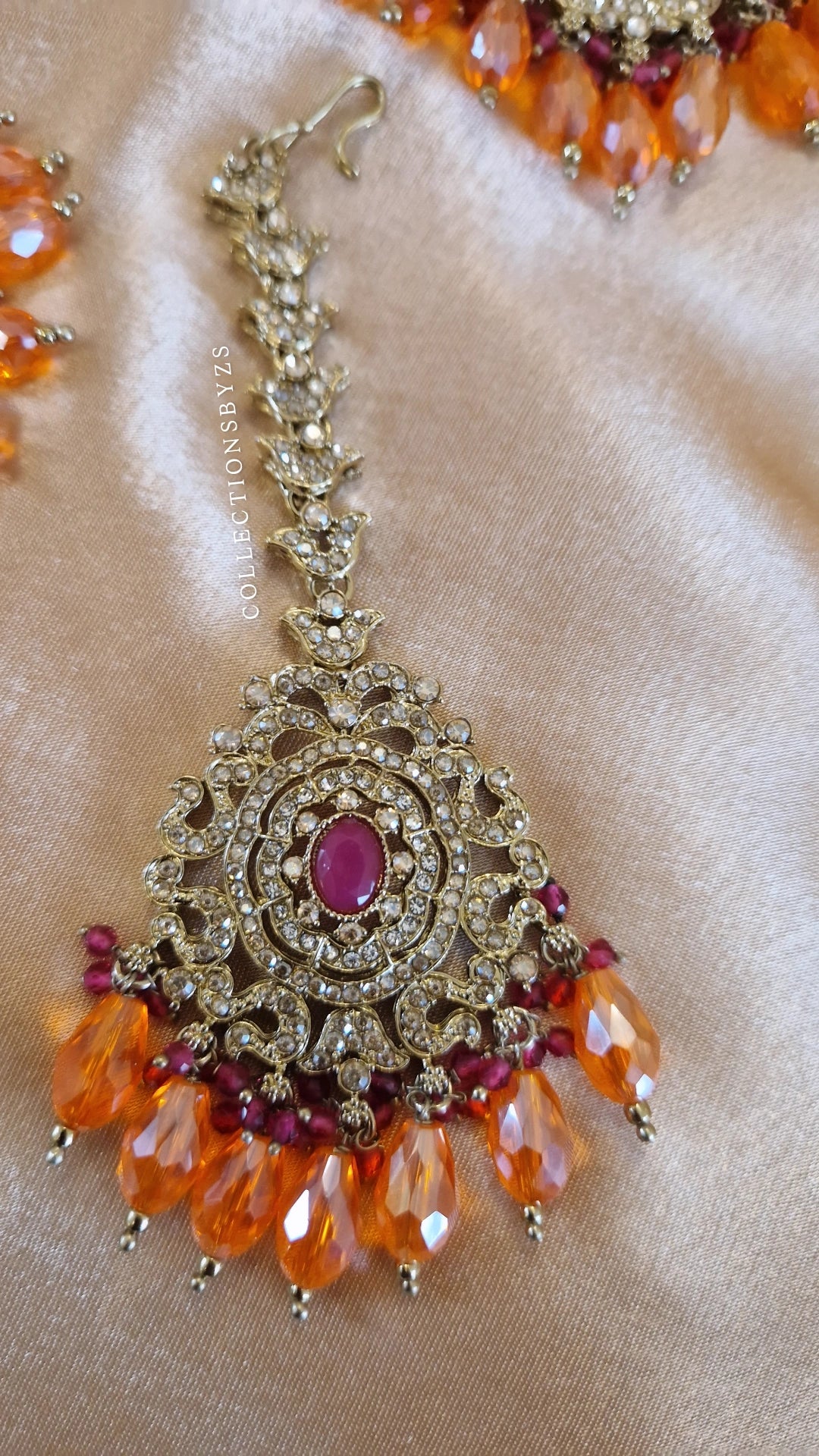 - 4 Piece - Necklace, Earrings, Tikka and Jhumar (Passa)