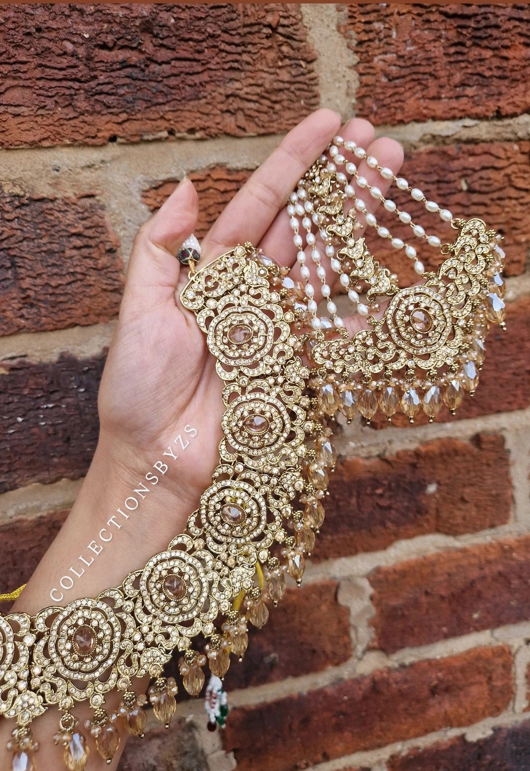 - 4 Piece - Necklace, Earrings, Tikka and Jhumar (Passa)