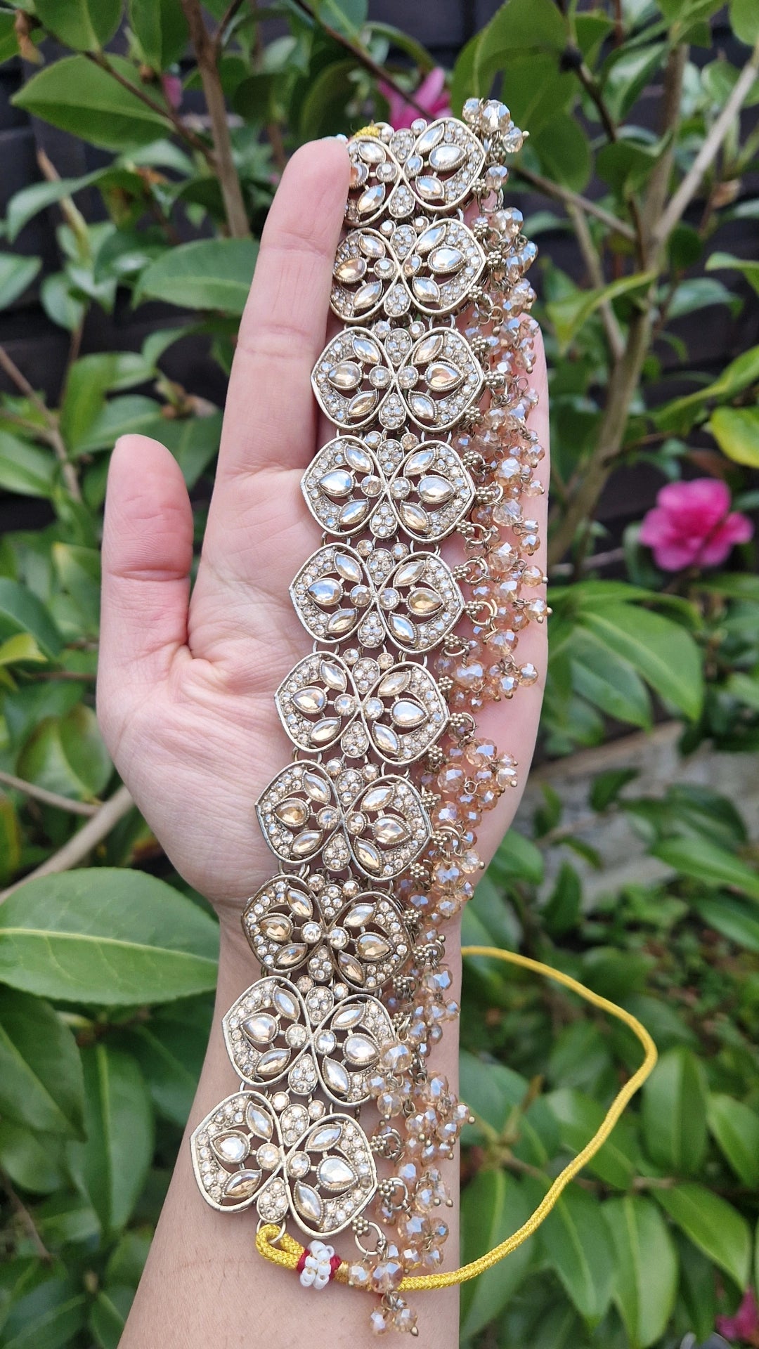 - Beadwork :- Diamante and Glass with Drop Indian crystal beads