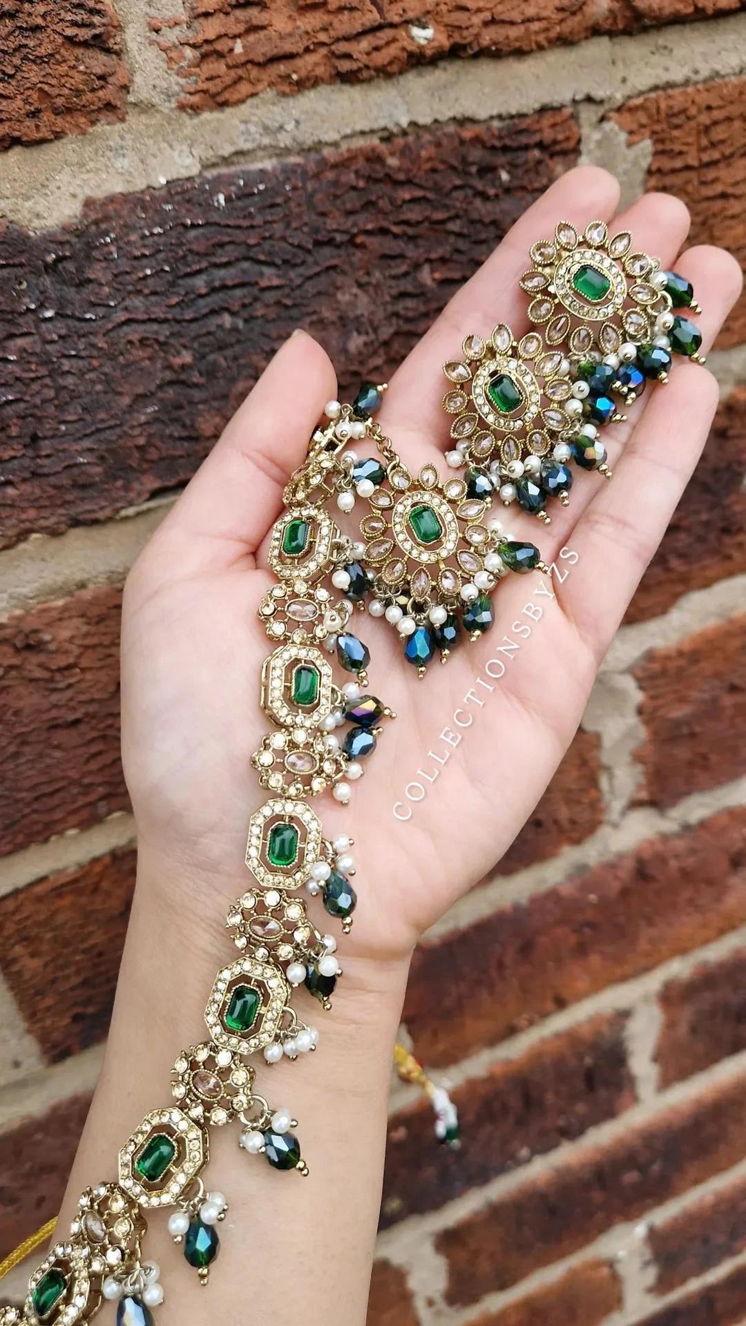 - 3 Piece - Choker, Earrings, and Tikka - SMALL set