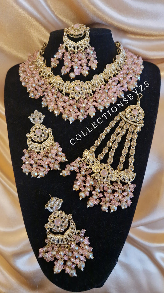 H A L I M A - Beautiful Indian 4 piece Necklace Set - Pink