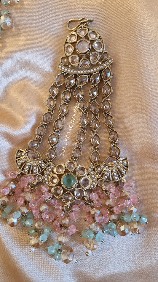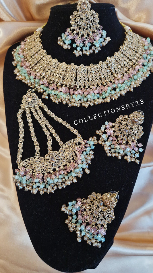 A Y L A - Stunning 4 Piece Indian Wedding/Party Jewellery Set - Mint/Aqua & Pink