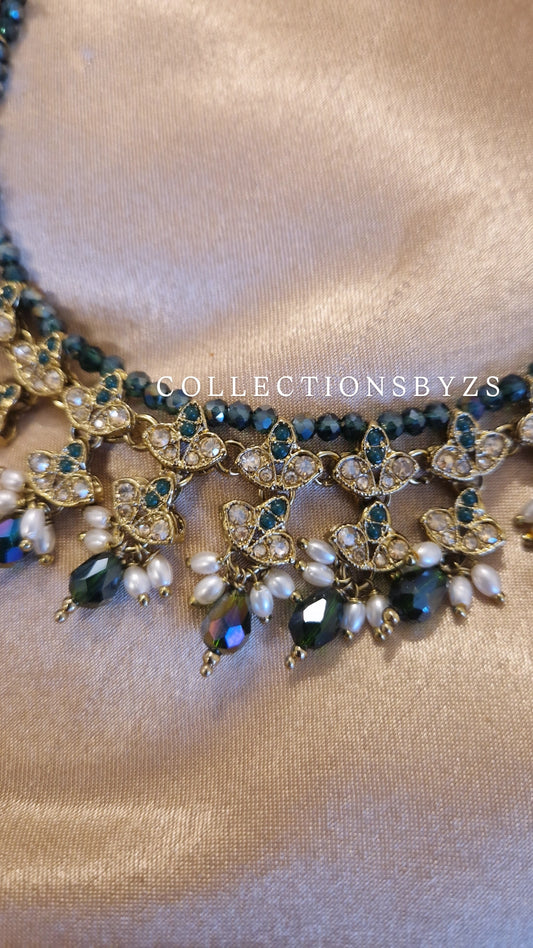 H A L I M A - Beautiful Indian 4 piece Necklace Set - GREEN